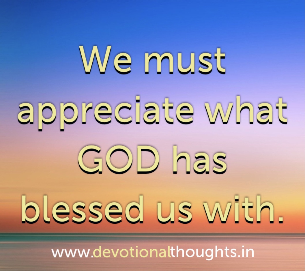 हमें इस बात की सराहना करनी चाहिए कि प्रभु ने हमें क्या आशीर्वाद के रूप में दिया है ।