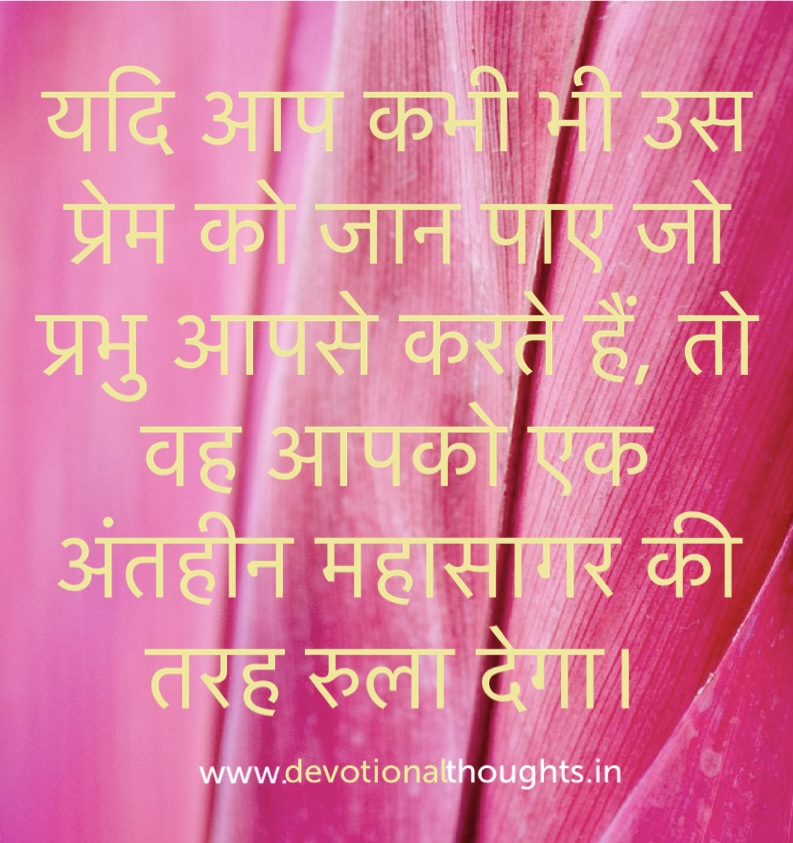 यदि आप कभी भी उस प्रेम को जान पाए जो प्रभु आपसे करते हैं, तो वह आपको एक अंतहीन महासागर की तरह रुला देगा ।