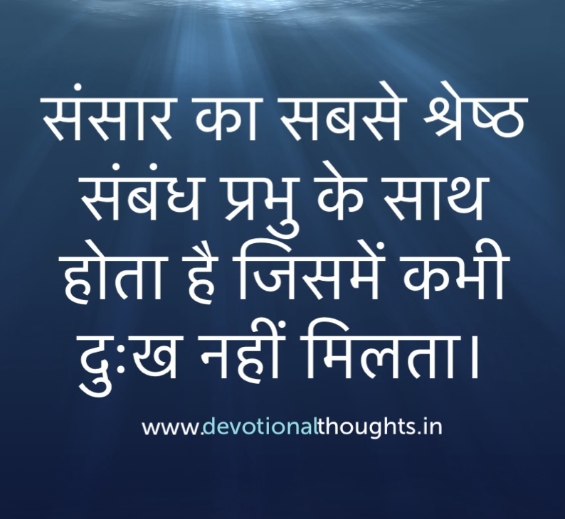 संसार का सबसे श्रेष्ठ संबंध प्रभु के साथ होता है जिसमें कभी दुःख नहीं मिलता ।