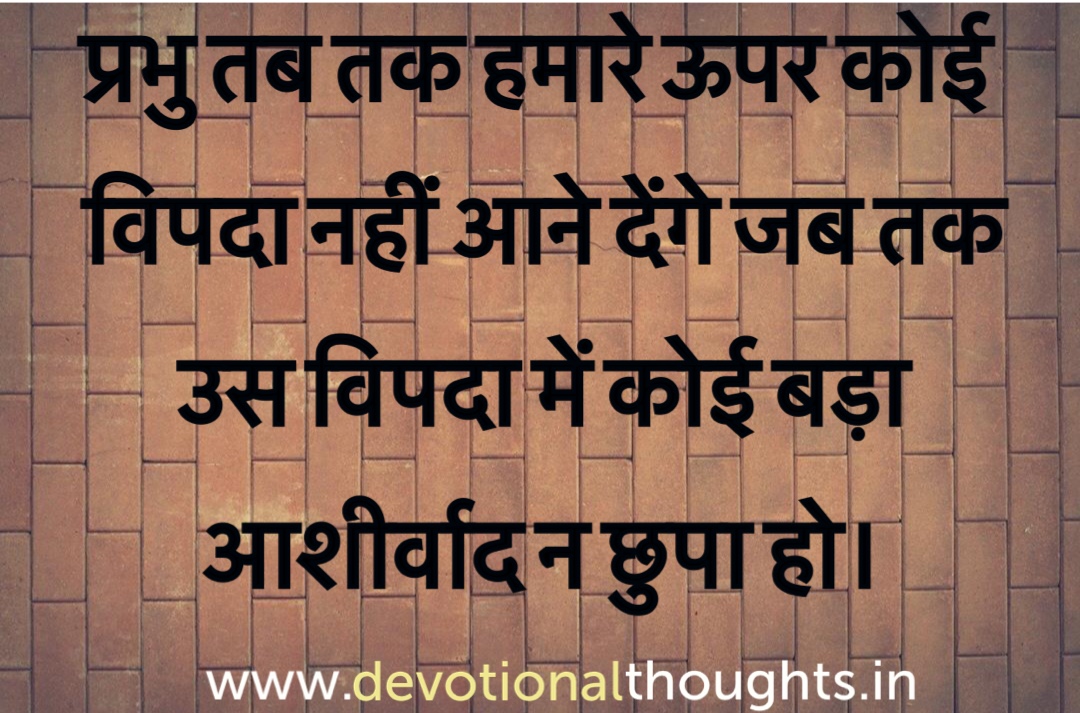प्रभु तब तक हमारे ऊपर कोई विपदा नहीं आने देंगे जब तक उस विपदा में कोई बड़ा आशीर्वाद न छुपा हो ।
