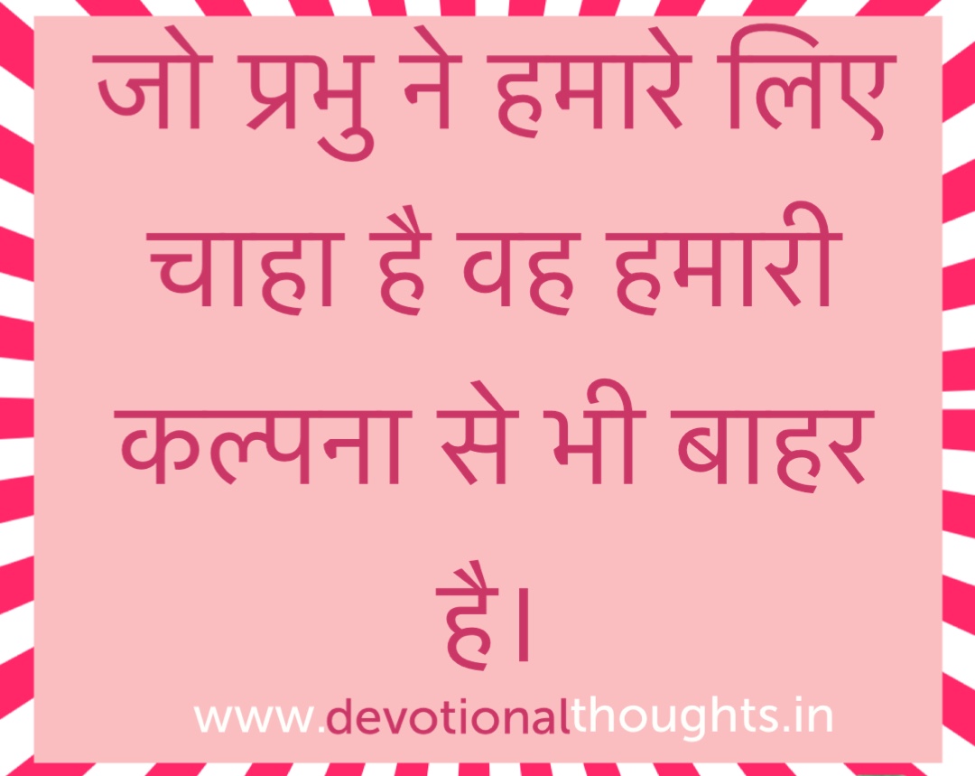 जो प्रभु ने हमारे लिए चाहा है वह हमारी कल्पना से भी बाहर है ।