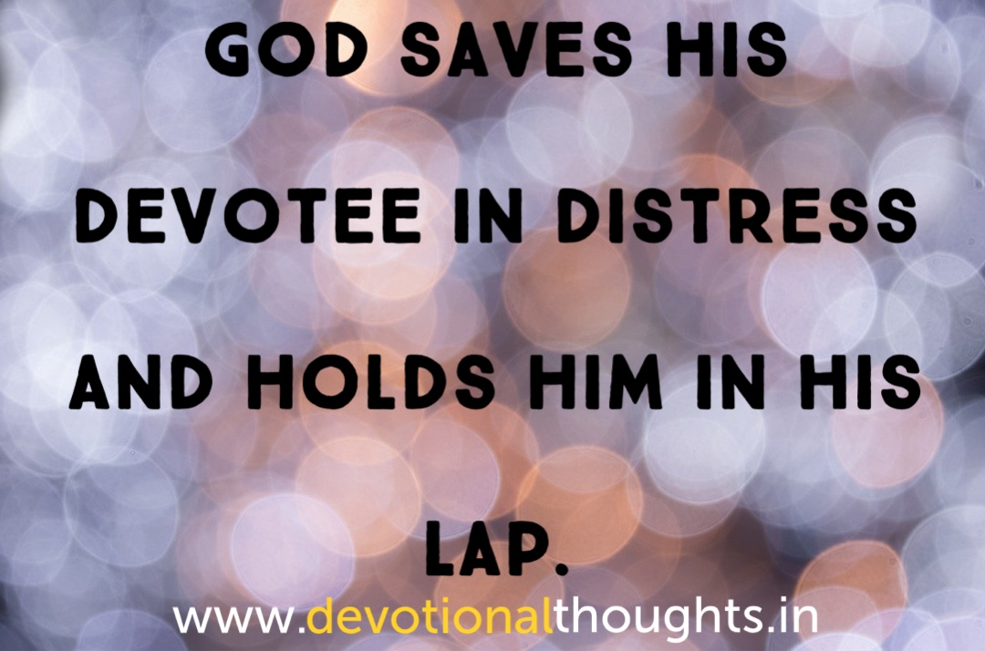 GOD saves His devotee in distress and holds him in His lap.