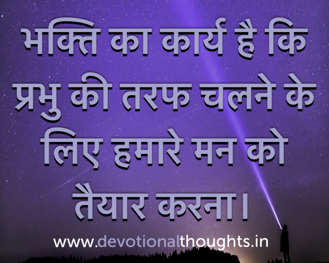 भक्ति का कार्य है कि प्रभु की तरफ चलने के लिए हमारे मन को तैयार करना ।