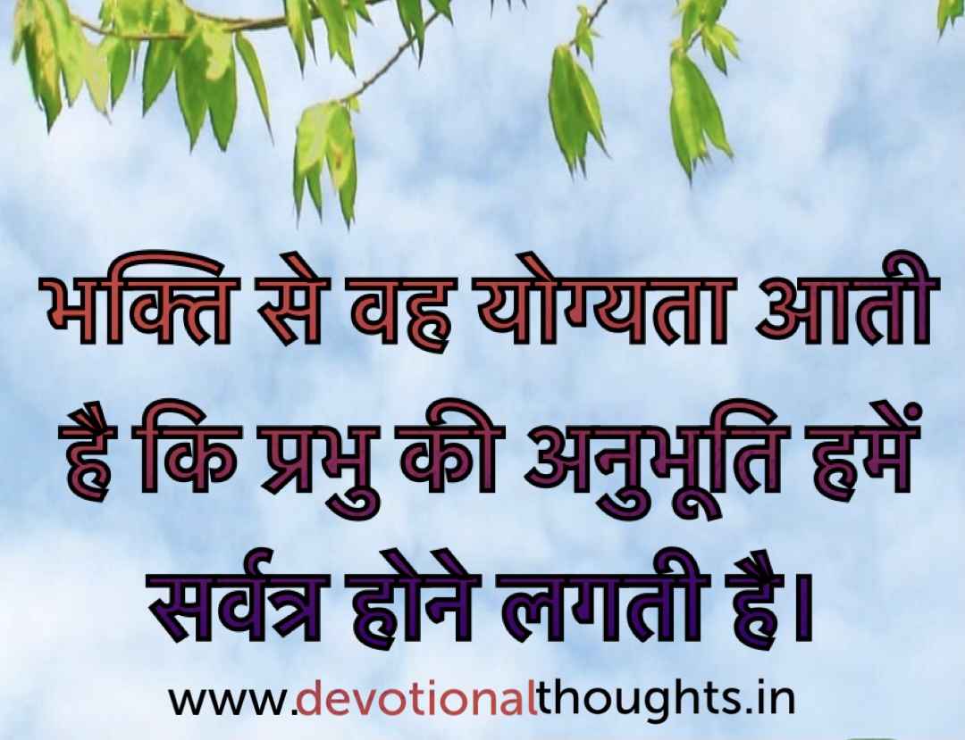 भक्ति से वह योग्यता आती है कि प्रभु की अनुभूति हमें सर्वत्र होने लगती है ।